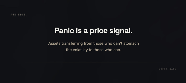 Panic is a price signal. Its assets transferring from those who can’t stomach the volatility to those who can.